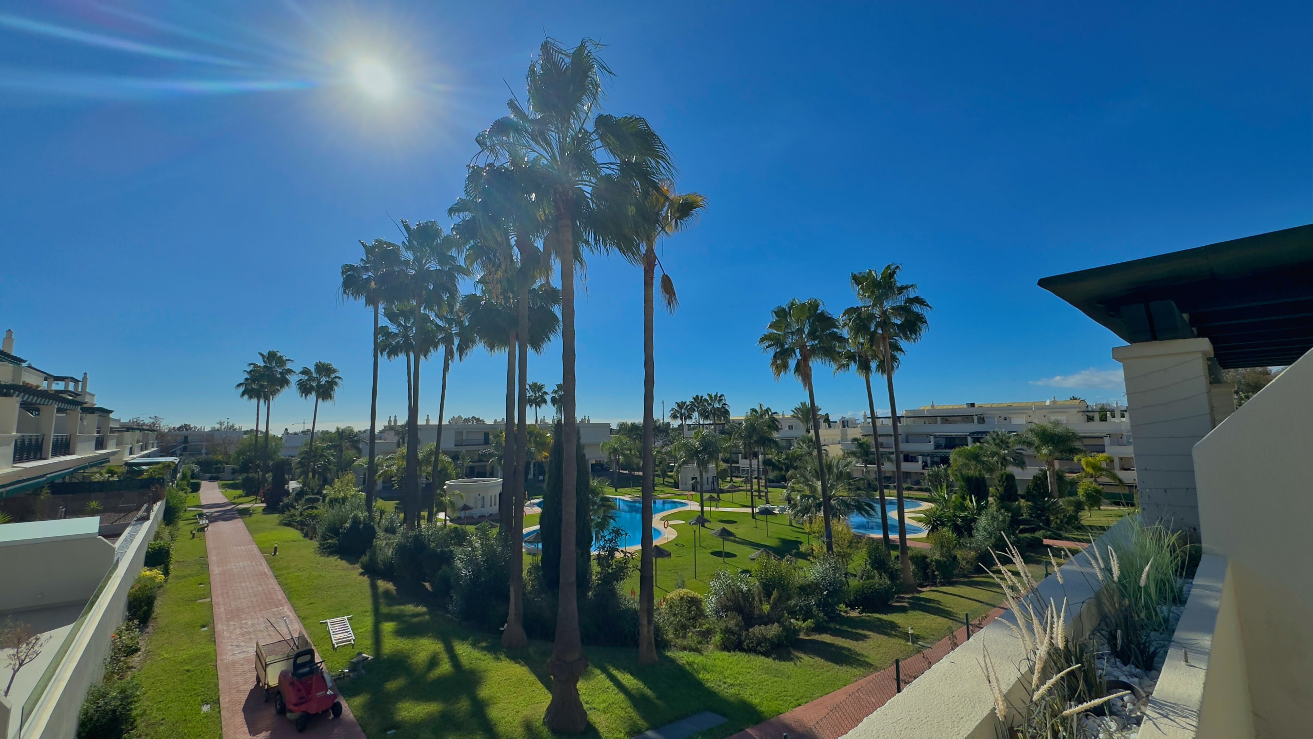 Al ingresar a la urbanización, te encontrarás rodeado de extensos jardines tropicales, meticulosamente mantenidos, que aportan una sensación de frescura y naturaleza a todo el entorno. Estos jardines están llenos de palmeras, plantas exóticas y flores coloridas que invitan a pasear y disfrutar de la belleza natural en cualquier momento del día.