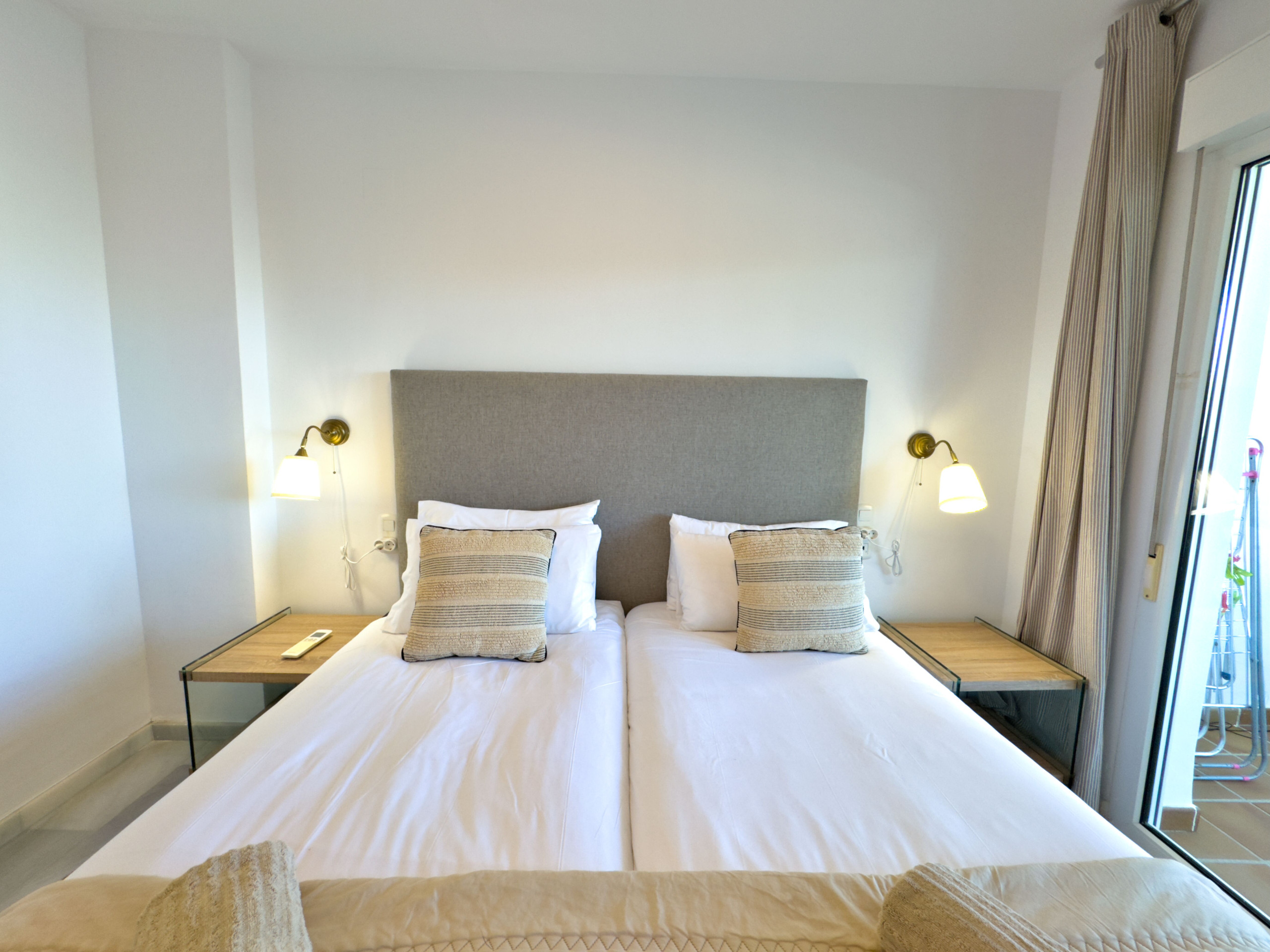 • Dos dormitorios amplios y luminosos con armarios empotrados. El dormitorio principal tiene acceso directo a la terraza, mientras que el segundo ofrece vistas parciales al mar.