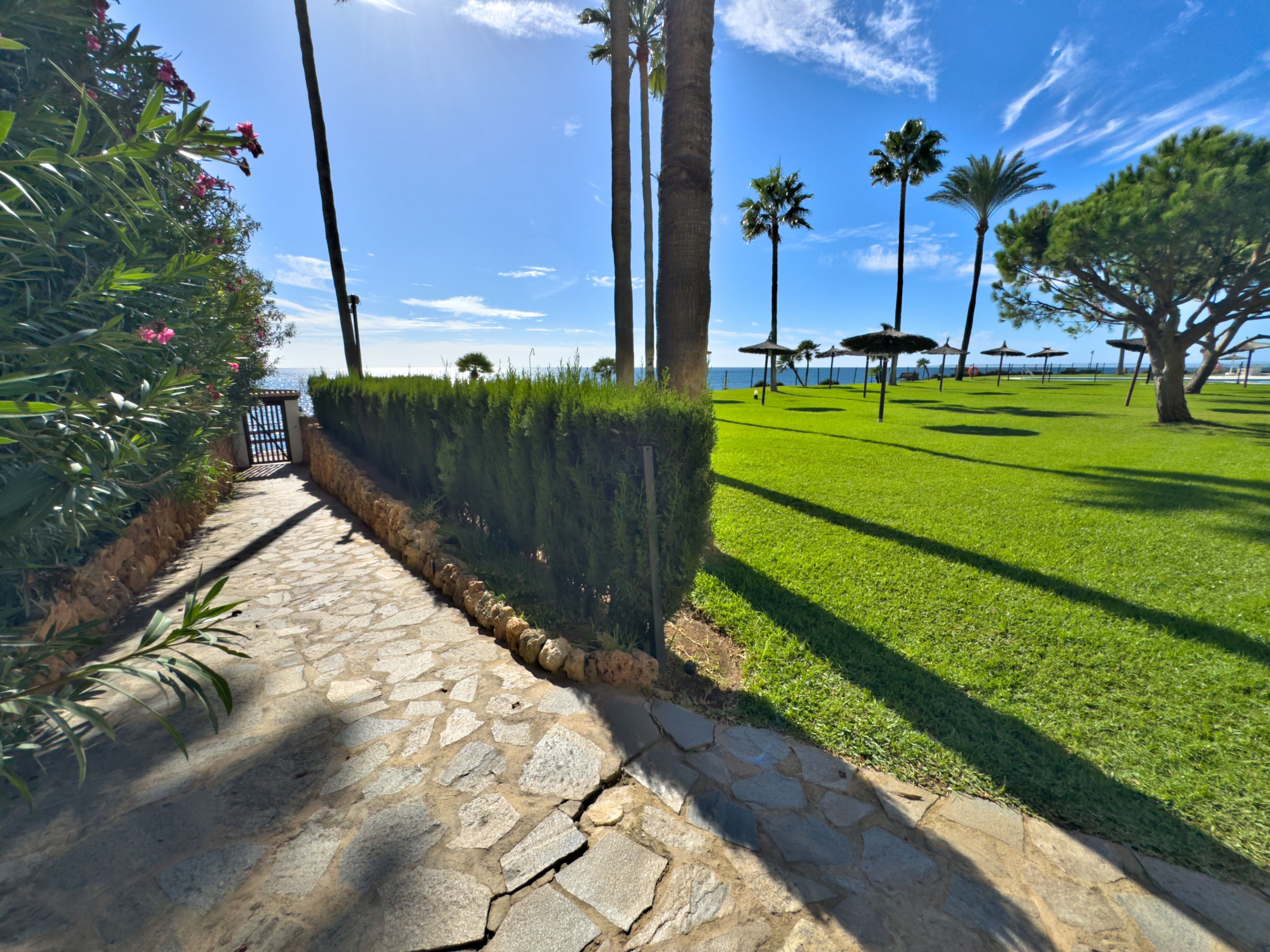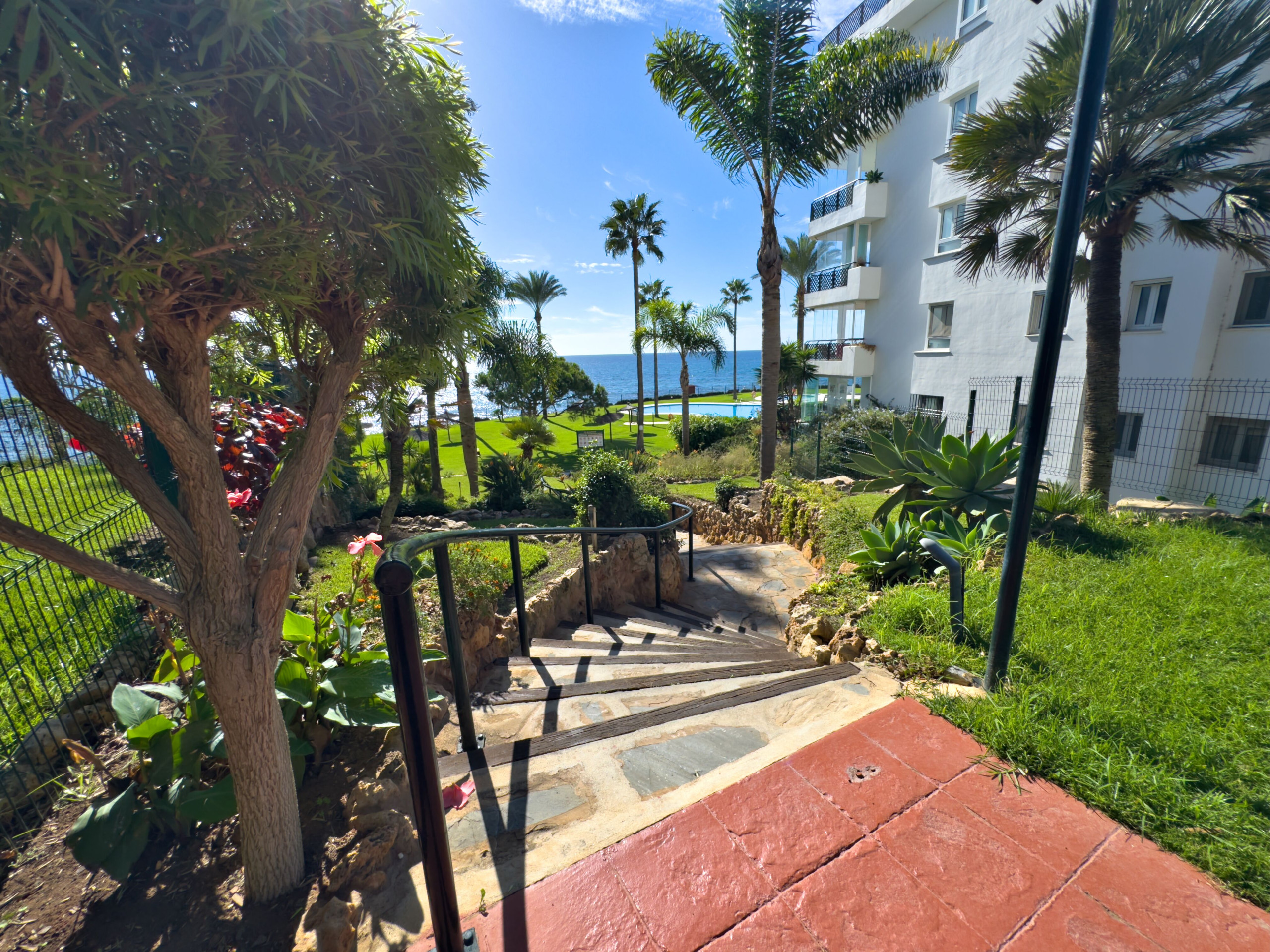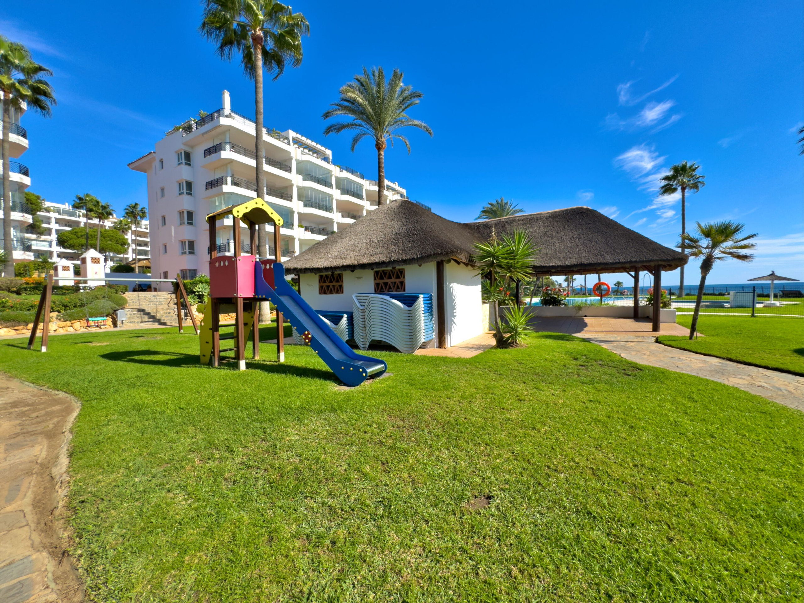 Elegante apartamento en primera línea de playa en Calahonda, Mijas Costa. Ubicado en el exclusivo complejo Mi Capricho, este refugio ofrece acceso directo a la playa, dos piscinas de agua salada y una