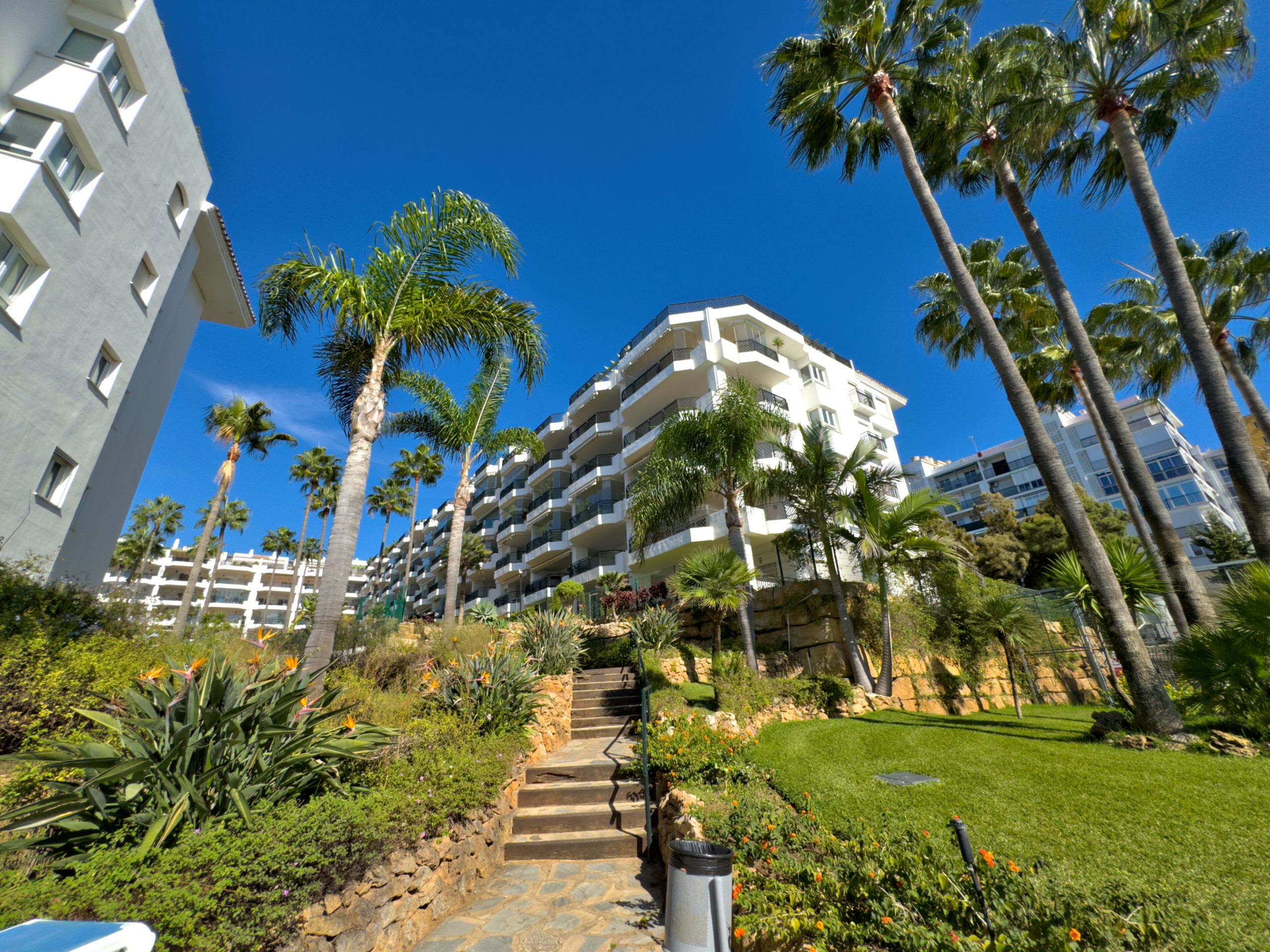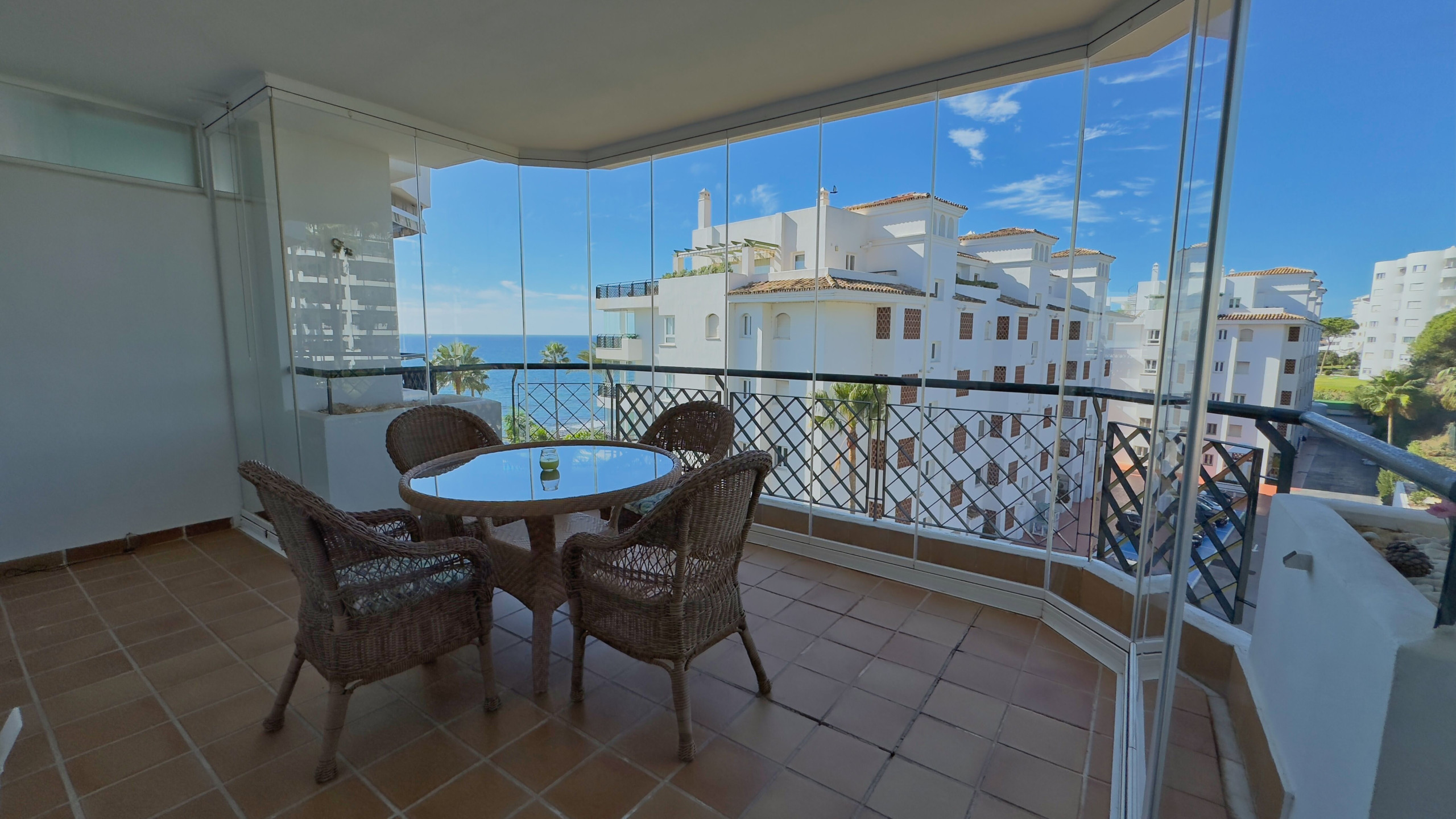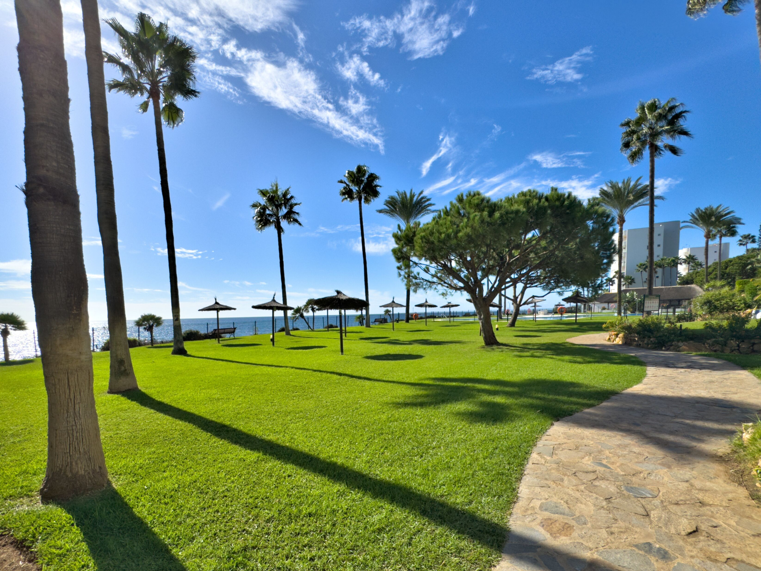 Elegante apartamento en primera línea de playa en Calahonda, Mijas Costa. Ubicado en el exclusivo complejo Mi Capricho, este refugio ofrece acceso directo a la playa, dos piscinas de agua salada y una