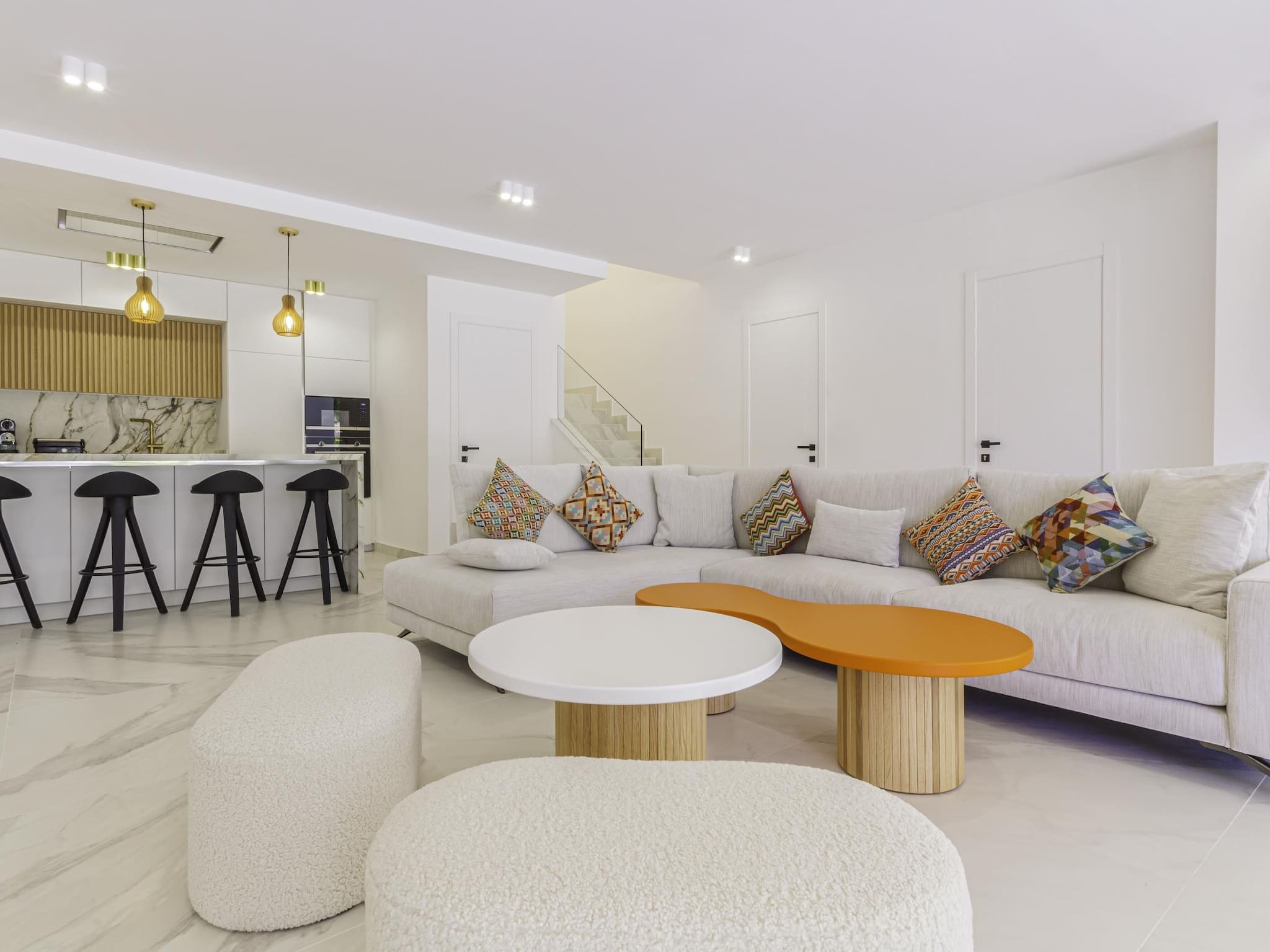 ✔ Amplio salón-comedor de concepto abierto, con una Smart TV de gran tamaño y mobiliario de diseño.