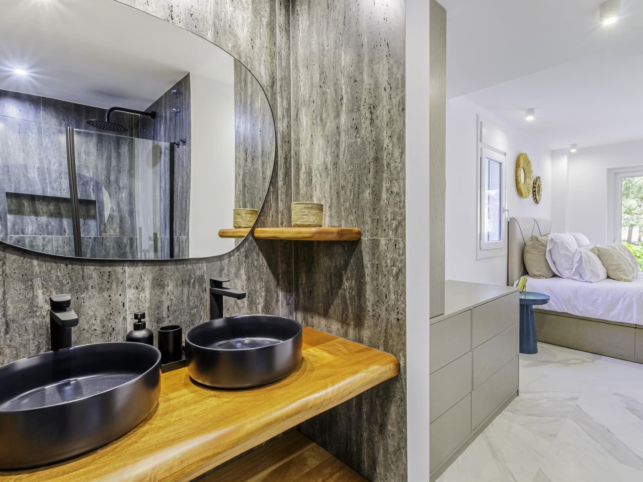 ✔ Segundo dormitorio, amplio y luminoso, con Smart TV, armarios empotrados y acceso a la misma terraza que el dormitorio principal. Dispone de baño en suite con doble lavabo y ducha.