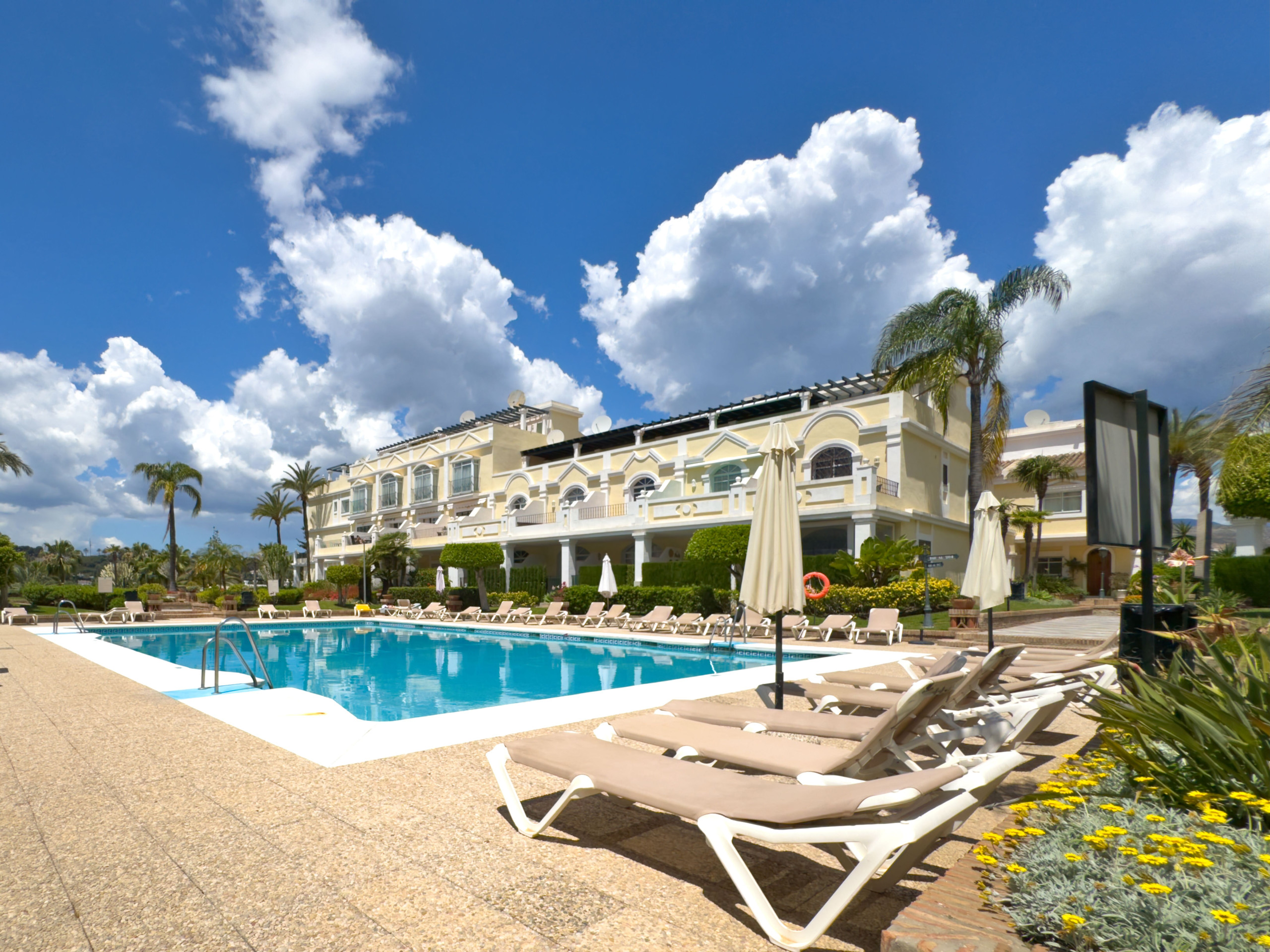 The Aloha Garden Marbella community is gated, well-maintained, and ideal for tourist rentals. It offers three outdoor swimming pools open all year round with free sunbeds, as well as beautifully kept Mediterranean-style gardens perfect for strolling and relaxing.