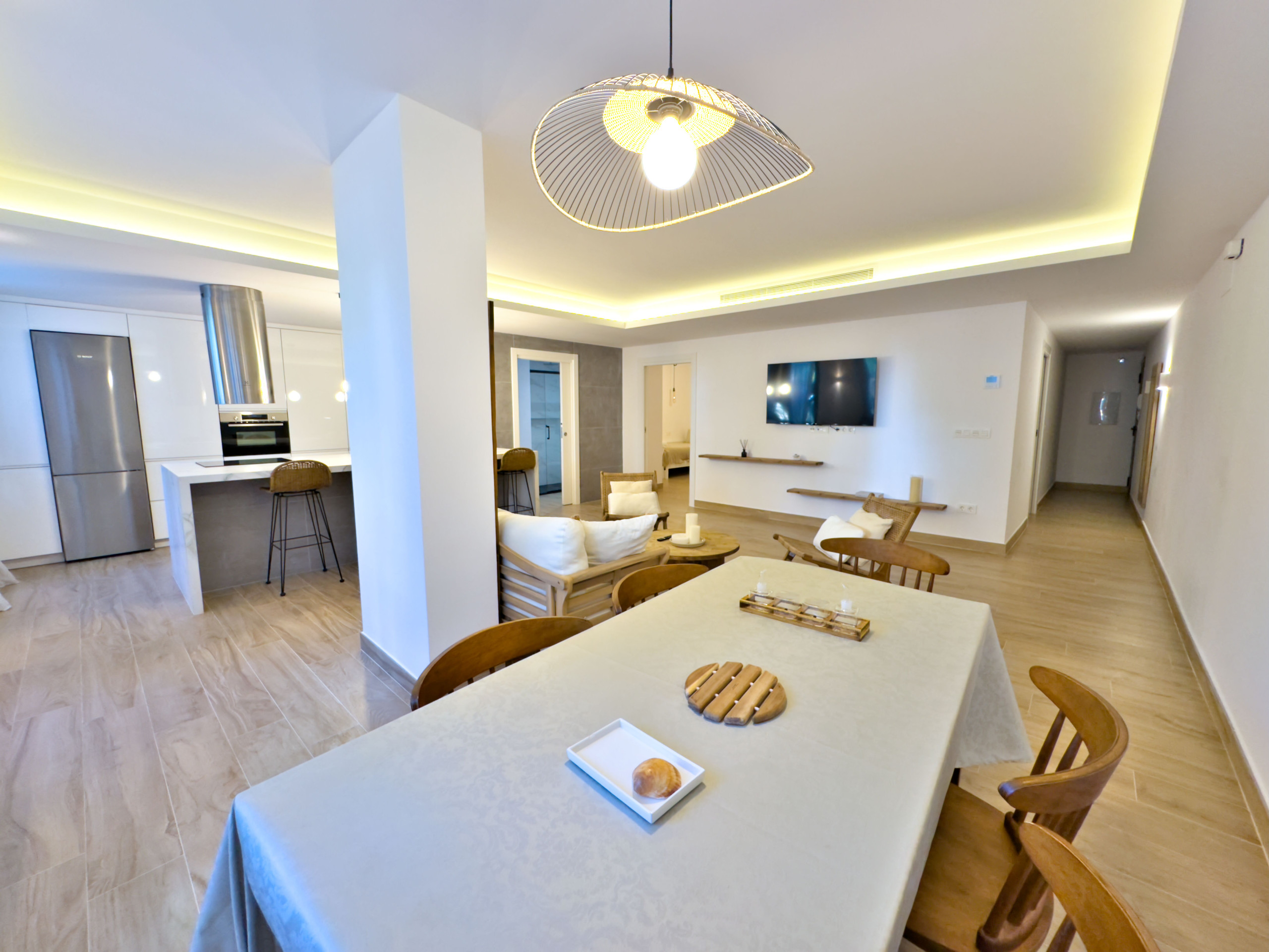Enjoy an open-plan living area, a private terrace with views of the mountains and the Church of El Calvario, and an unbeatable central location. Just steps from the beach, shops, and restaurants. Ideal for families or friends seeking an unforgettable experience on the Costa del Sol, featuring central air conditioning and a fully equipped kitchen for your maximum comfort.
