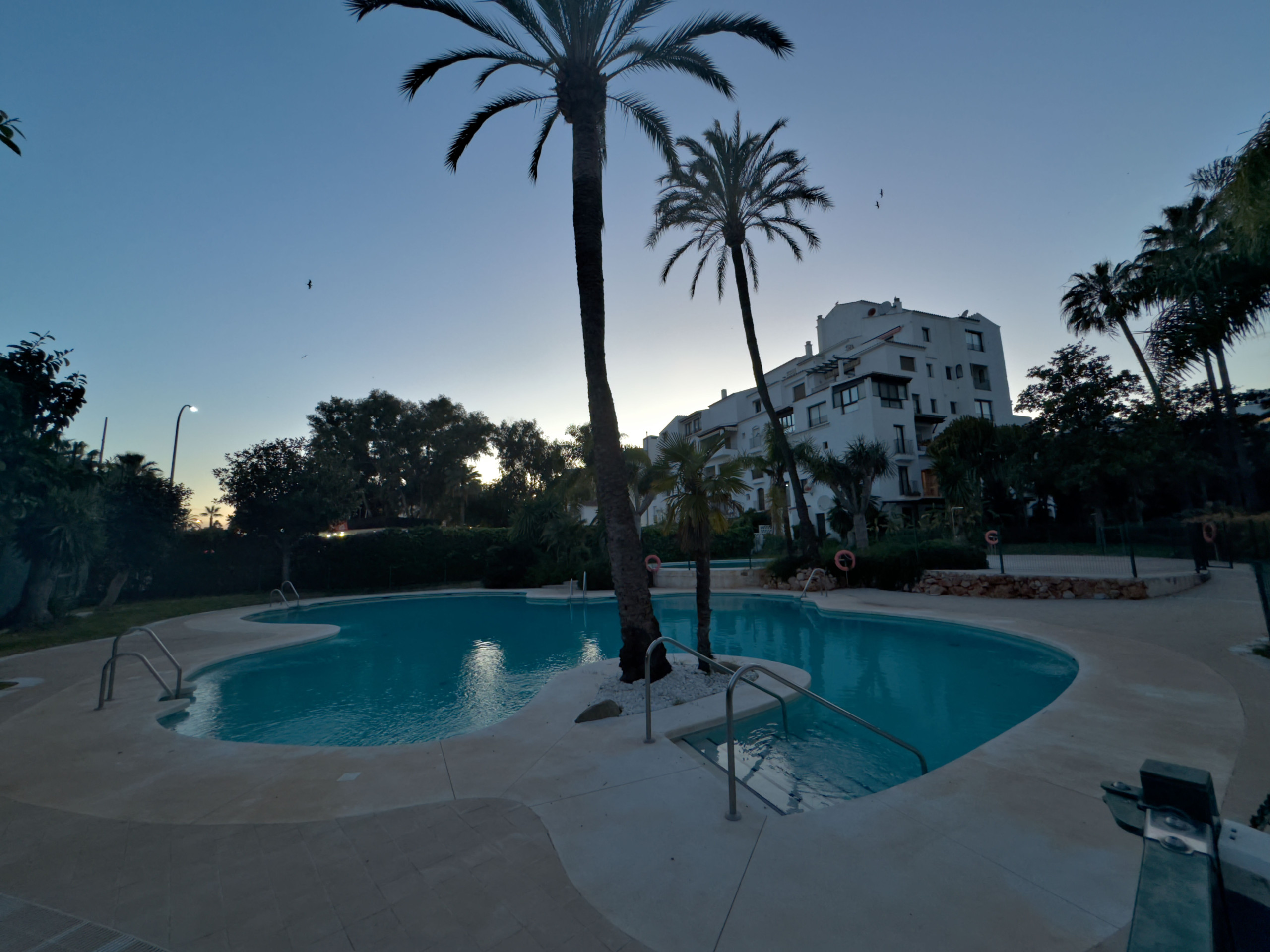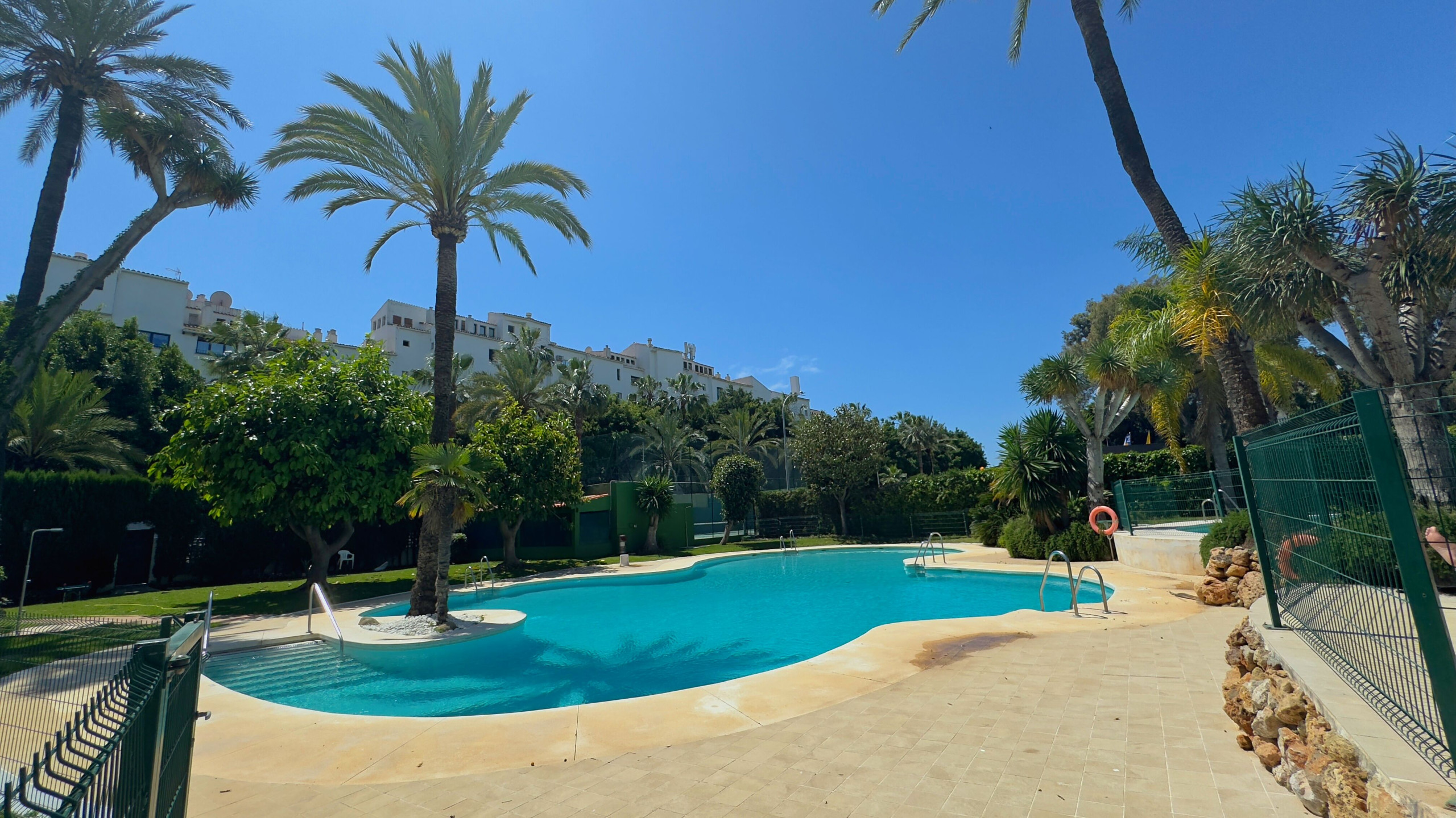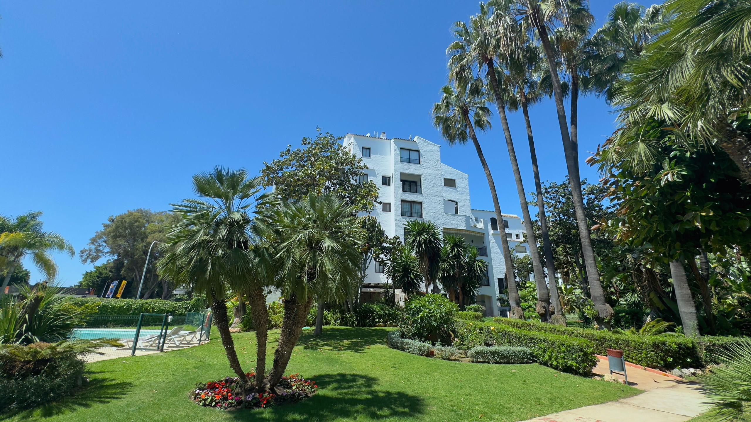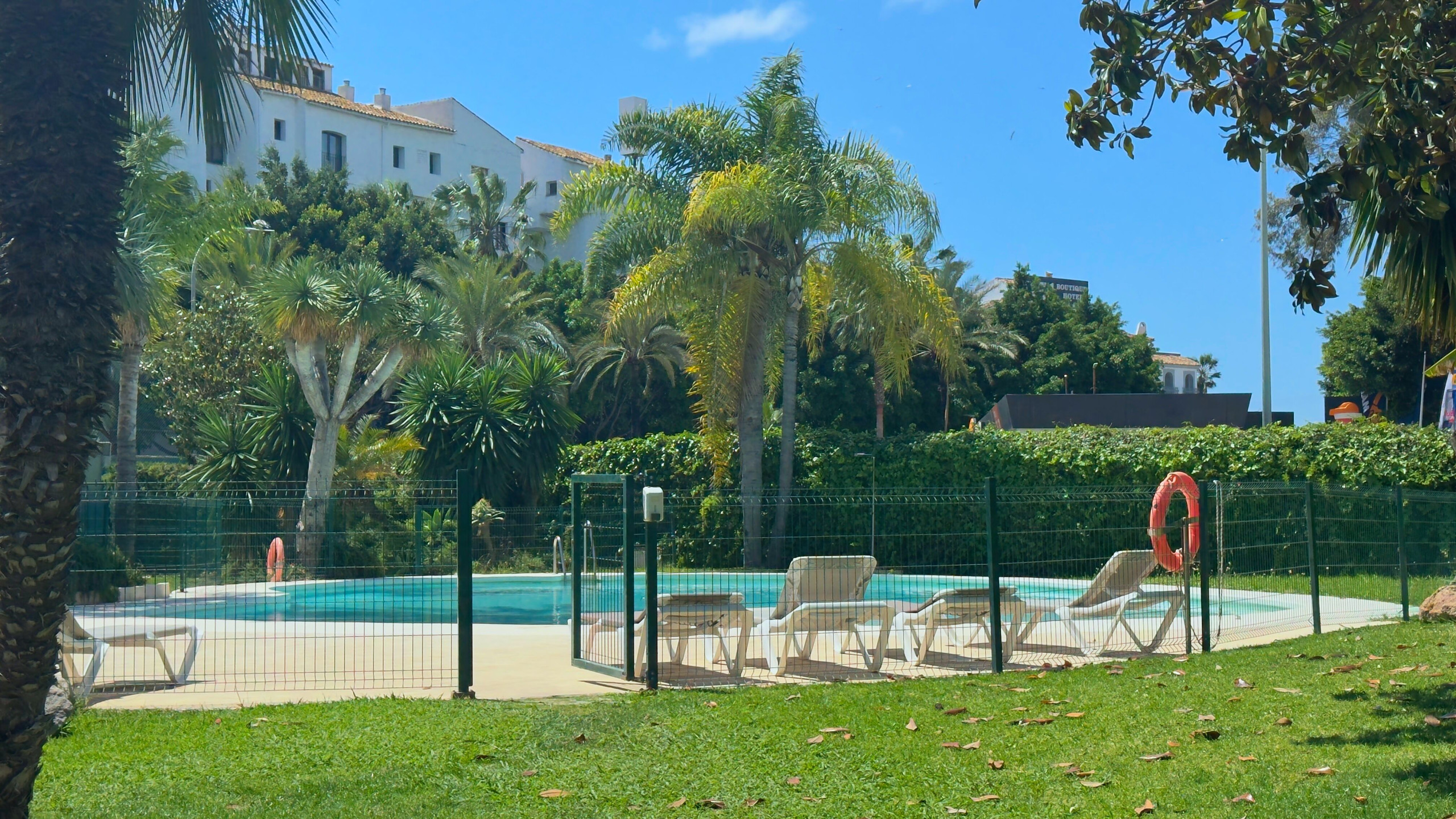 The residential complex, built in 1982 to reflect the charming architecture of Puerto Banús, is surrounded by lush tropical gardens and offers three communal swimming pools, one of which is open year-round. The other two are available from 15 June to 15 September. The large seasonal pool, shared with a neighbouring complex, provides sun loungers with a refundable deposit of €2 per unit.