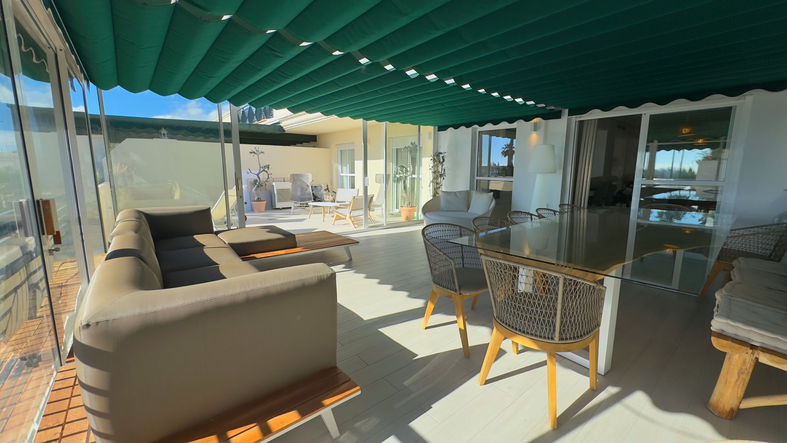 ✅ Spacious living-dining area with direct access to a spectacular terrace