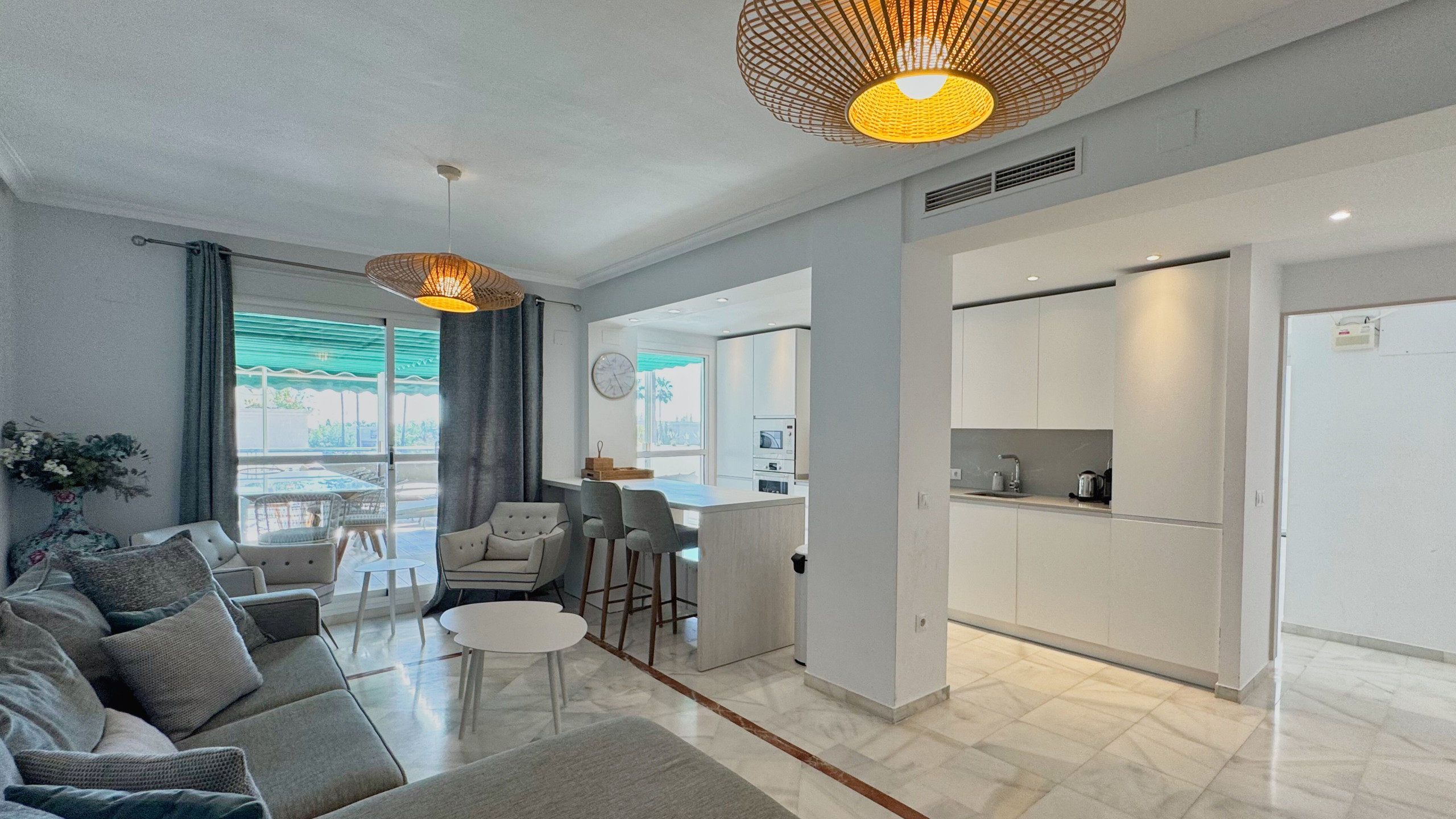 We present an exclusive holiday apartment in the heart of Marbella, fully renovated with a modern and elegant design. Located on the ground floor, just a few meters from the marina and in second line to the beach, this property offers the perfect combination of luxury, comfort, and a prime location in Marbella. Additionally, it is less than a 10-minute walk from the old town, making it ideal for exploring the historical and cultural charm of the city.