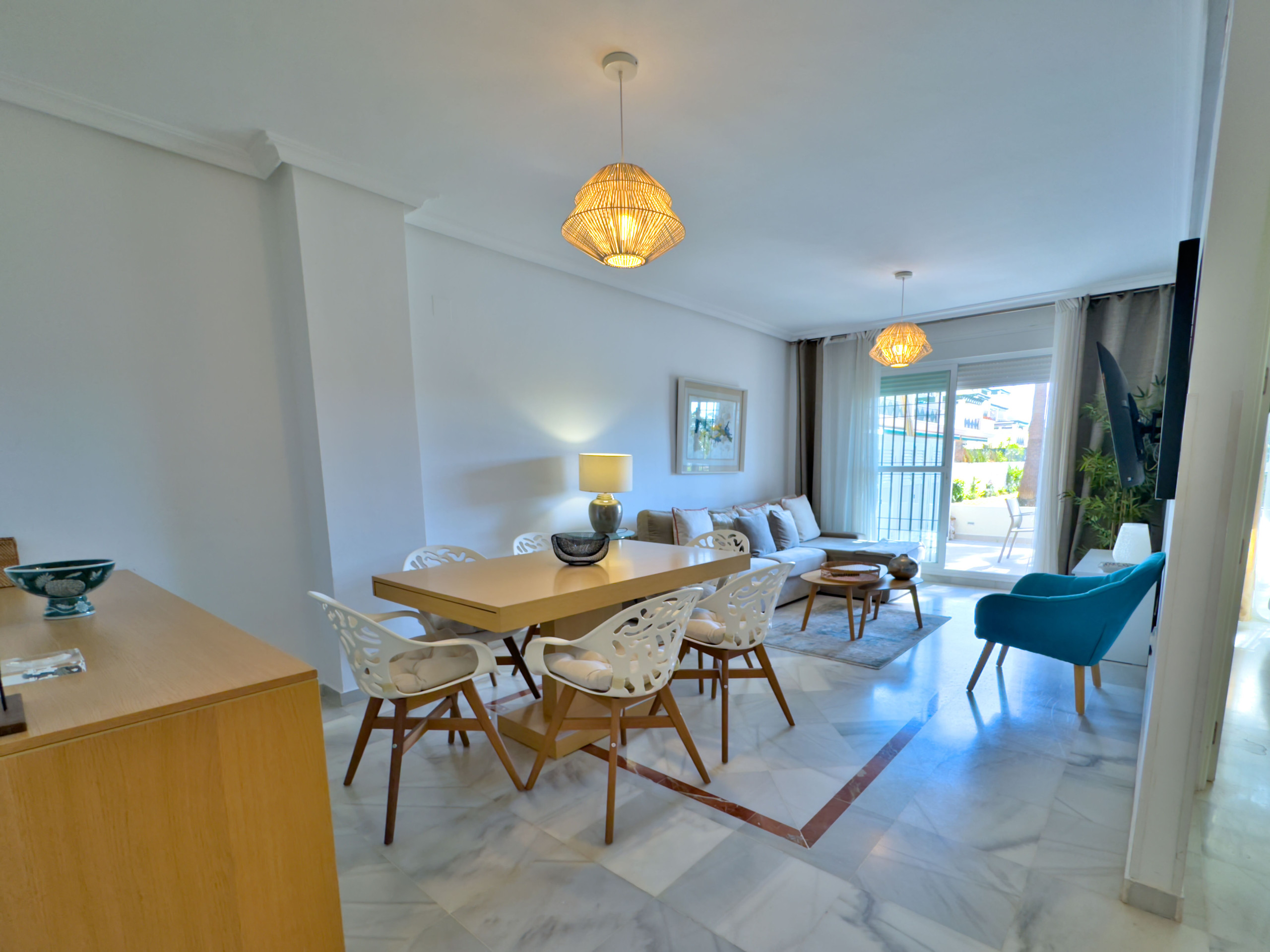 ✅ Spacious living-dining area with direct access to a spectacular terrace
