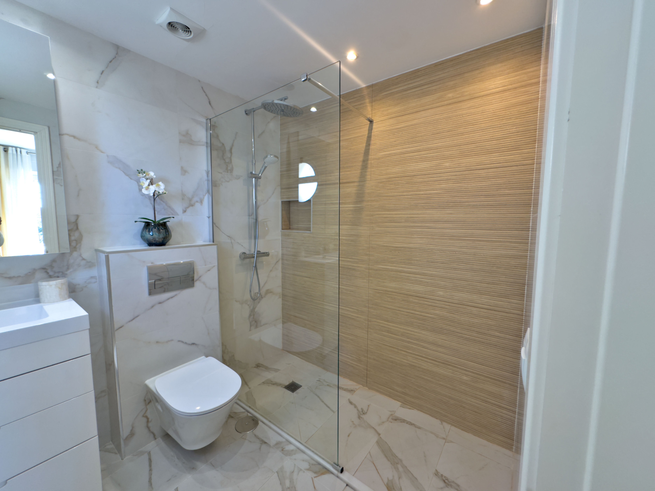 Master Bedroom: Features a large built-in wardrobe and an en-suite bathroom with a shower.