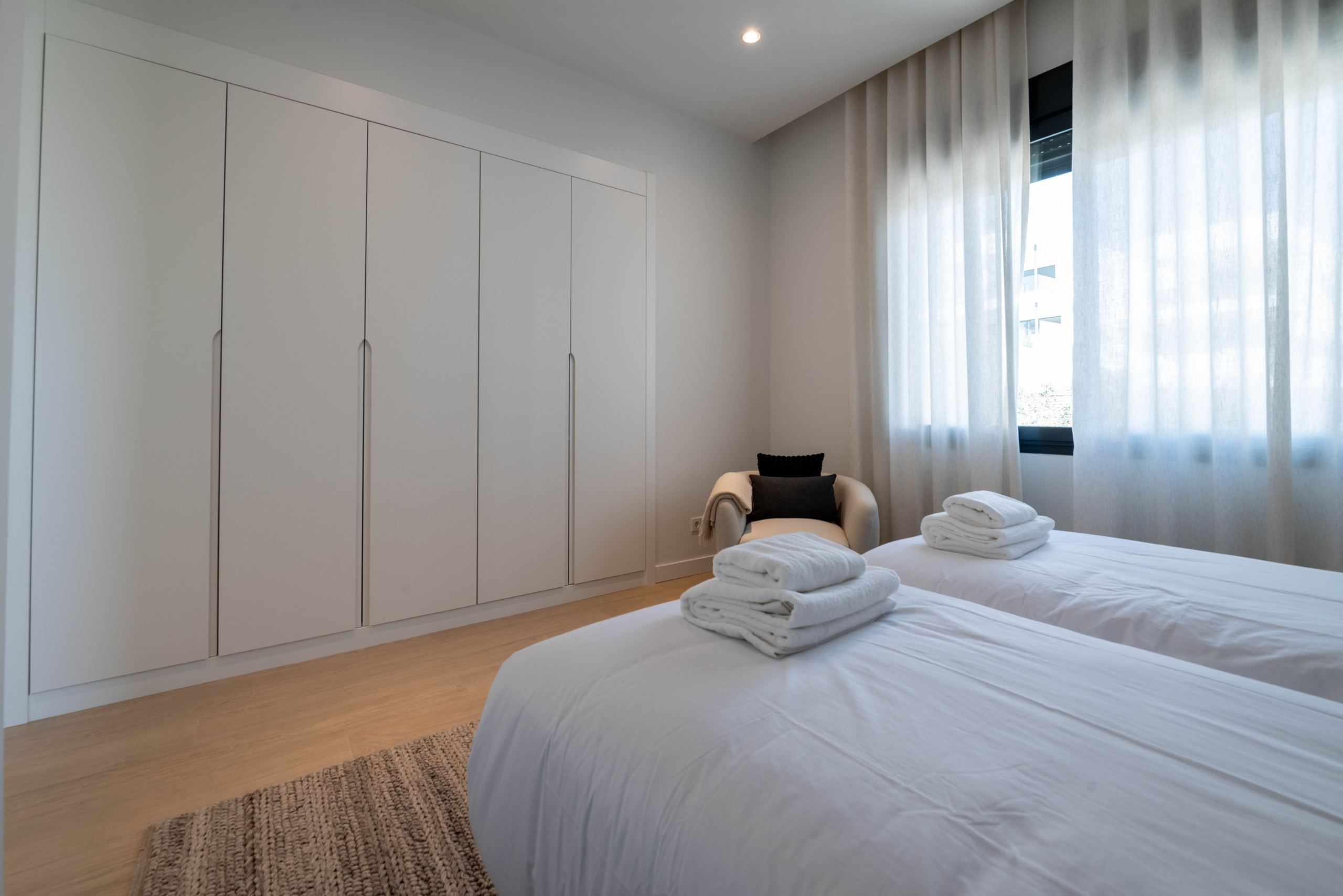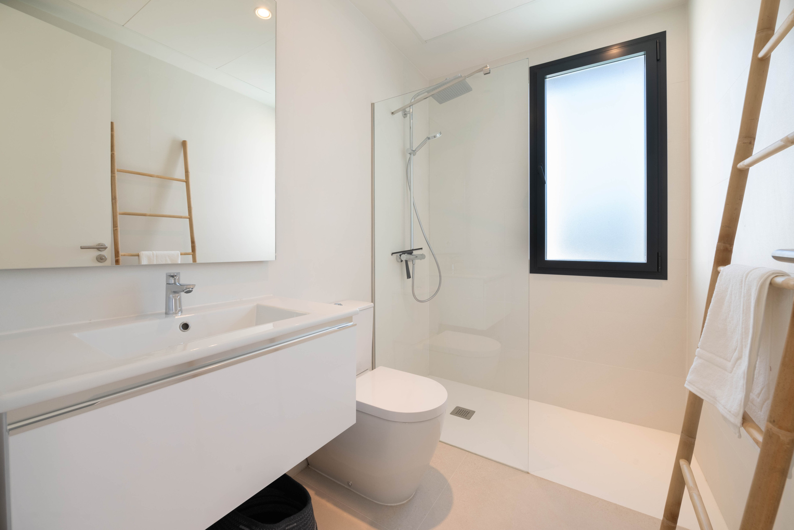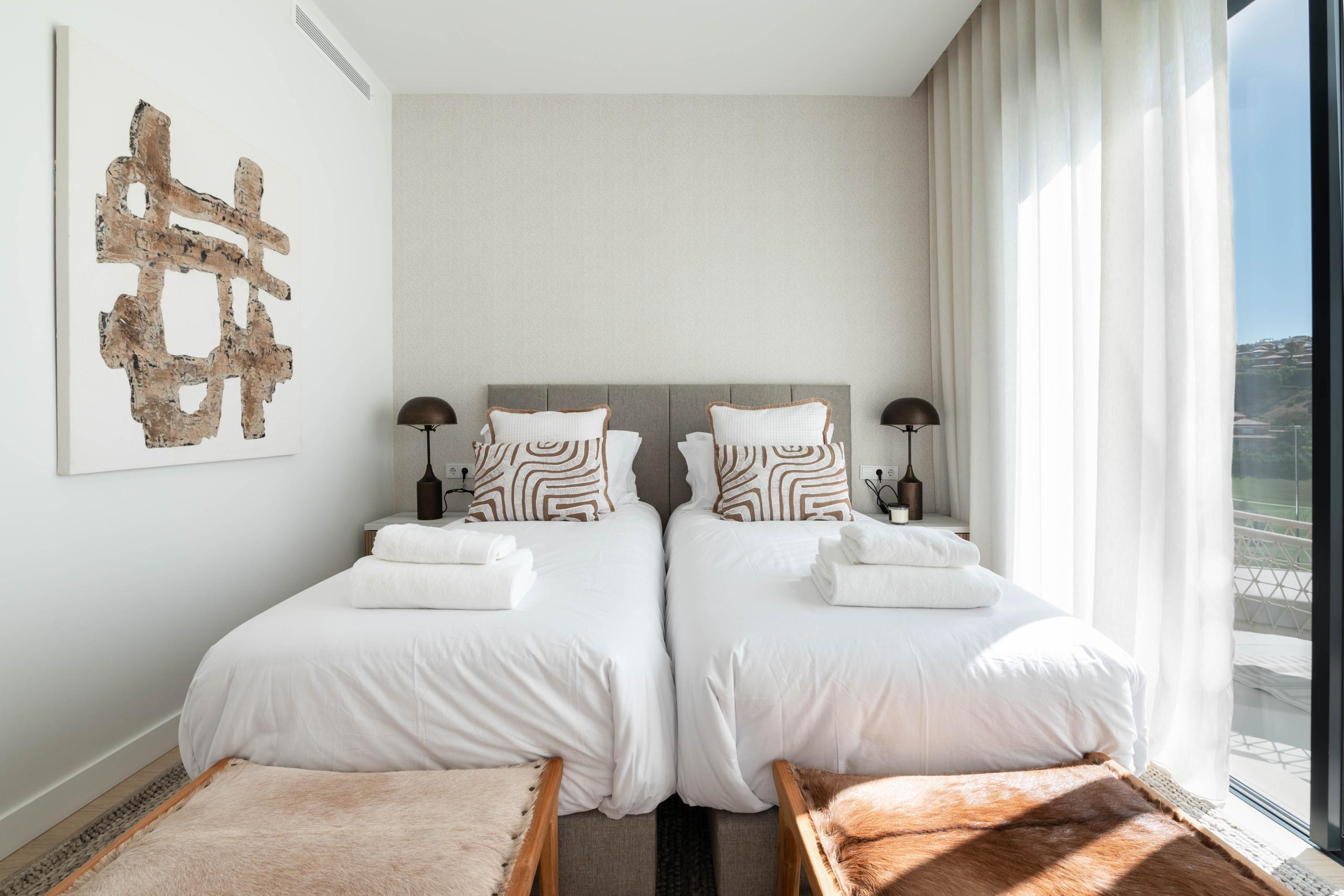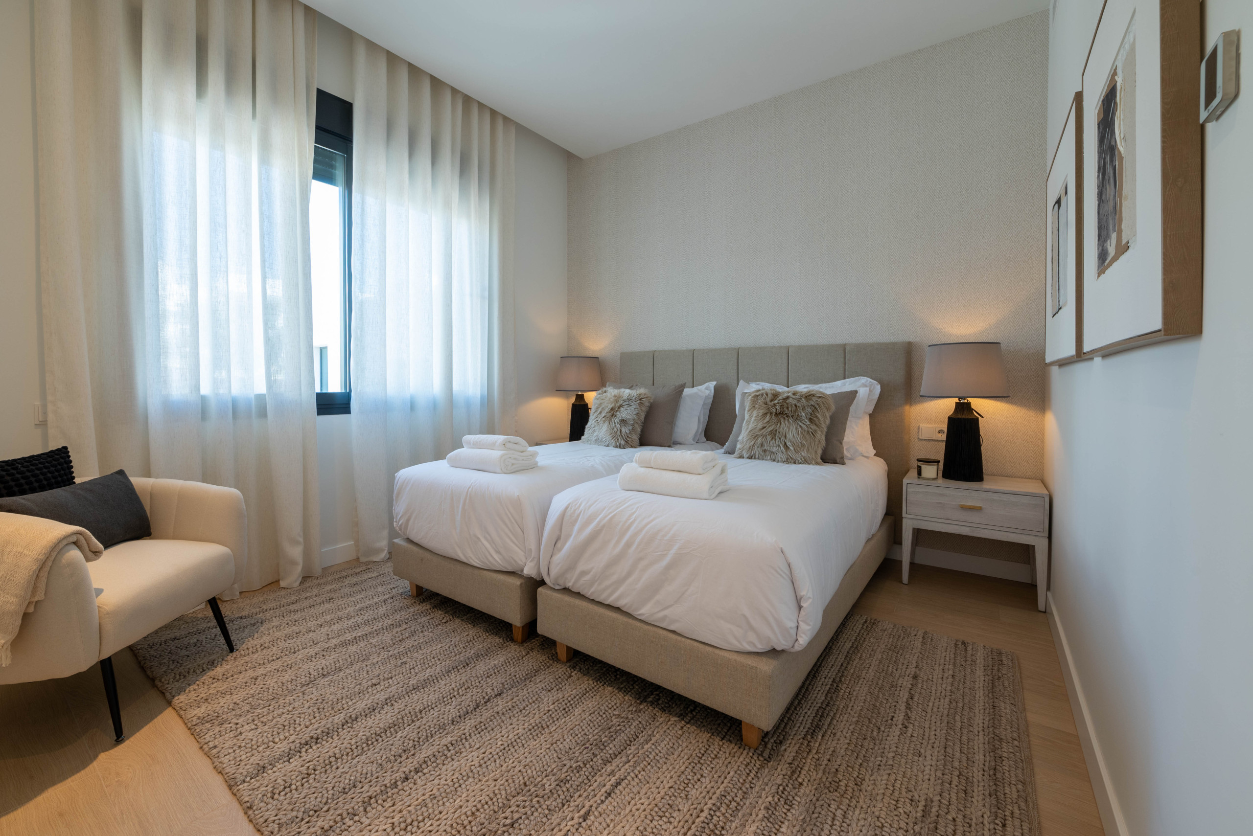 First Floor On the first floor, you will find the elegant master bedroom, which includes a private terrace and a luxurious en-suite bathroom with a shower and bathtub. Also on this floor are two additional bedrooms, both with twin beds. These two bedrooms share a full bathroom with a shower, and the design of this floor maintains the modern and sophisticated style characteristic of Villa Soul 17, making it a perfect choice for families seeking a vacation rental in Marbella.