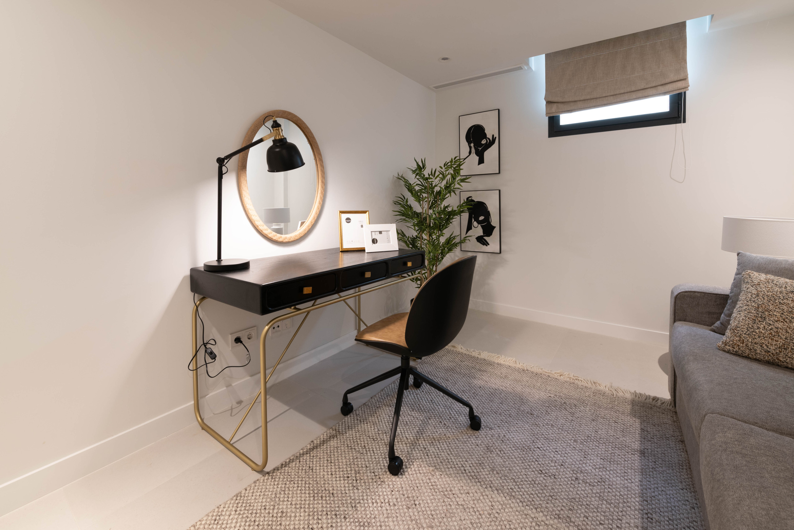 Basement Floor The basement of Villa Soul 17 is designed to provide additional functionality and privacy. Here, you’ll find a laundry room equipped with everything needed for garment care, including a washer and dryer. Additionally, there is a small private office, ideal for those who need to work during their stay. This floor also includes a full bathroom with a shower. From the basement, you have direct access to the underground parking, which includes two garage spaces, offering a versatile option for a vacation rental on the Costa del Sol.