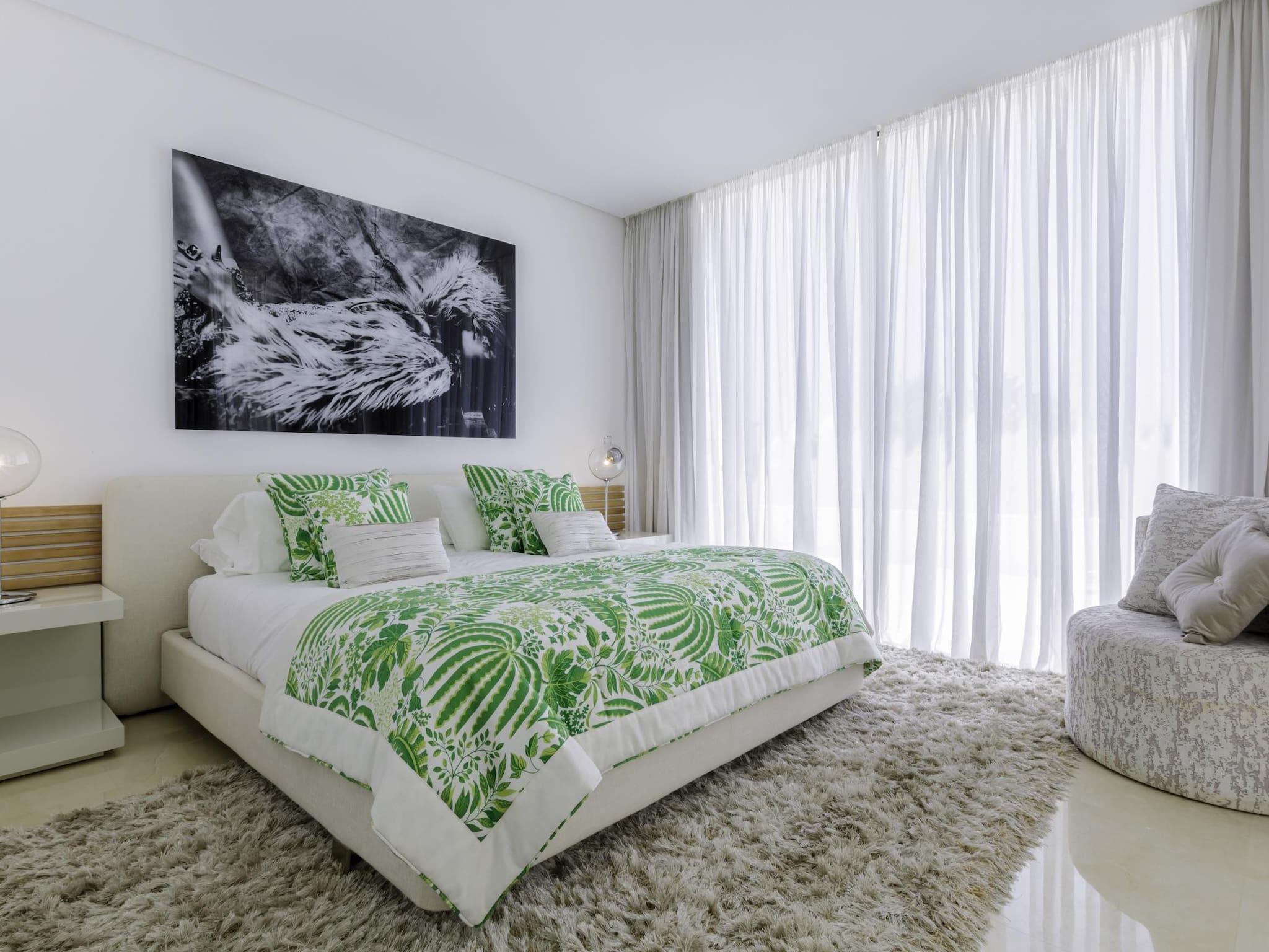 Espaces Spacieux et Lumineux : La villa dispose de grandes pièces baignées de lumière naturelle grâce à ses larges baies vitrées. La décoration est moderne et élégante, créant une ambiance chaleureuse et sophistiquée pour votre location de vacances sur la Costa del Sol.